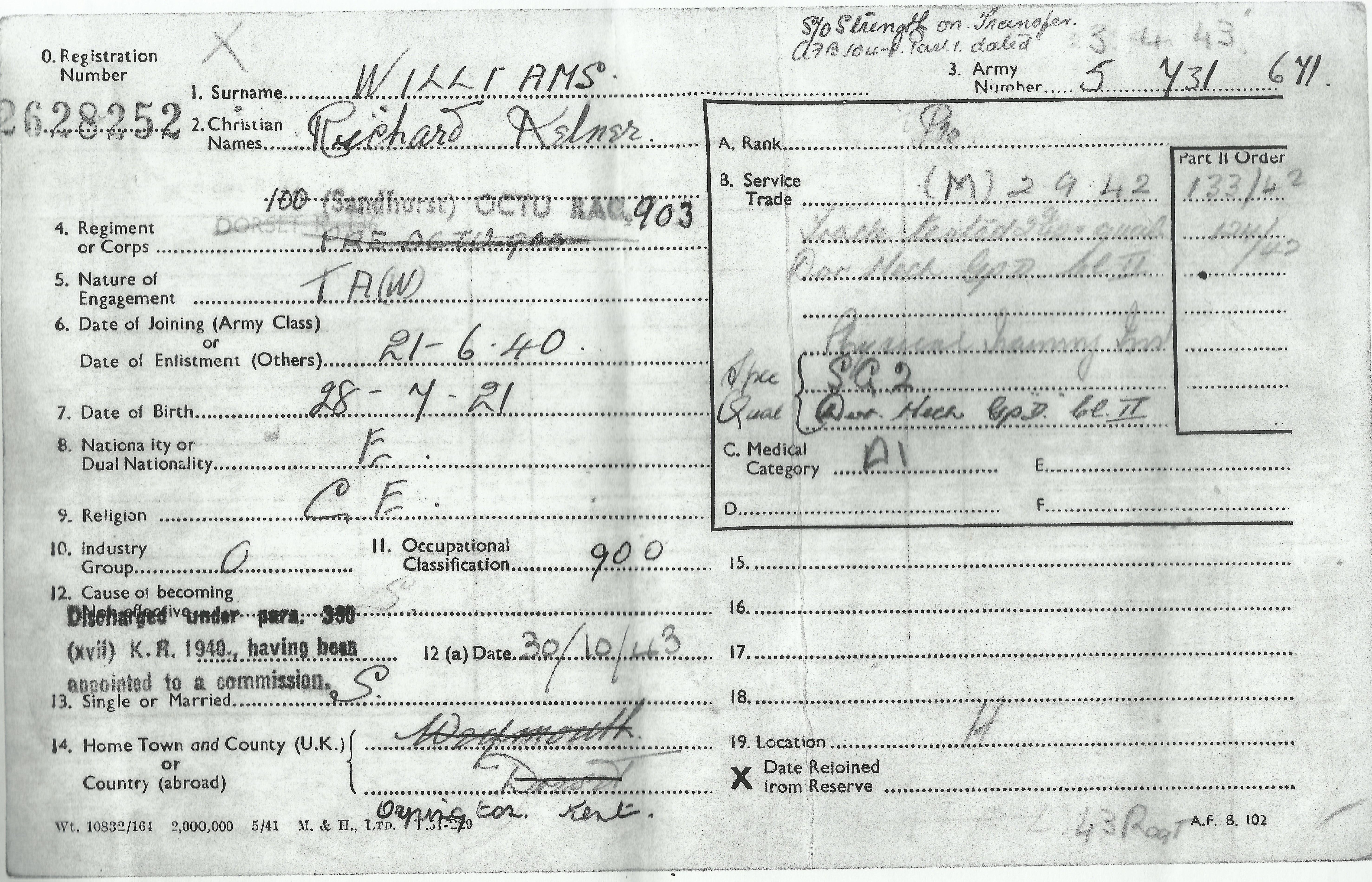 Lieutenant Richard Kelner Williams is laid to rest in the Reichswald Forest War Cemetery south-west of Kleve in Germany.