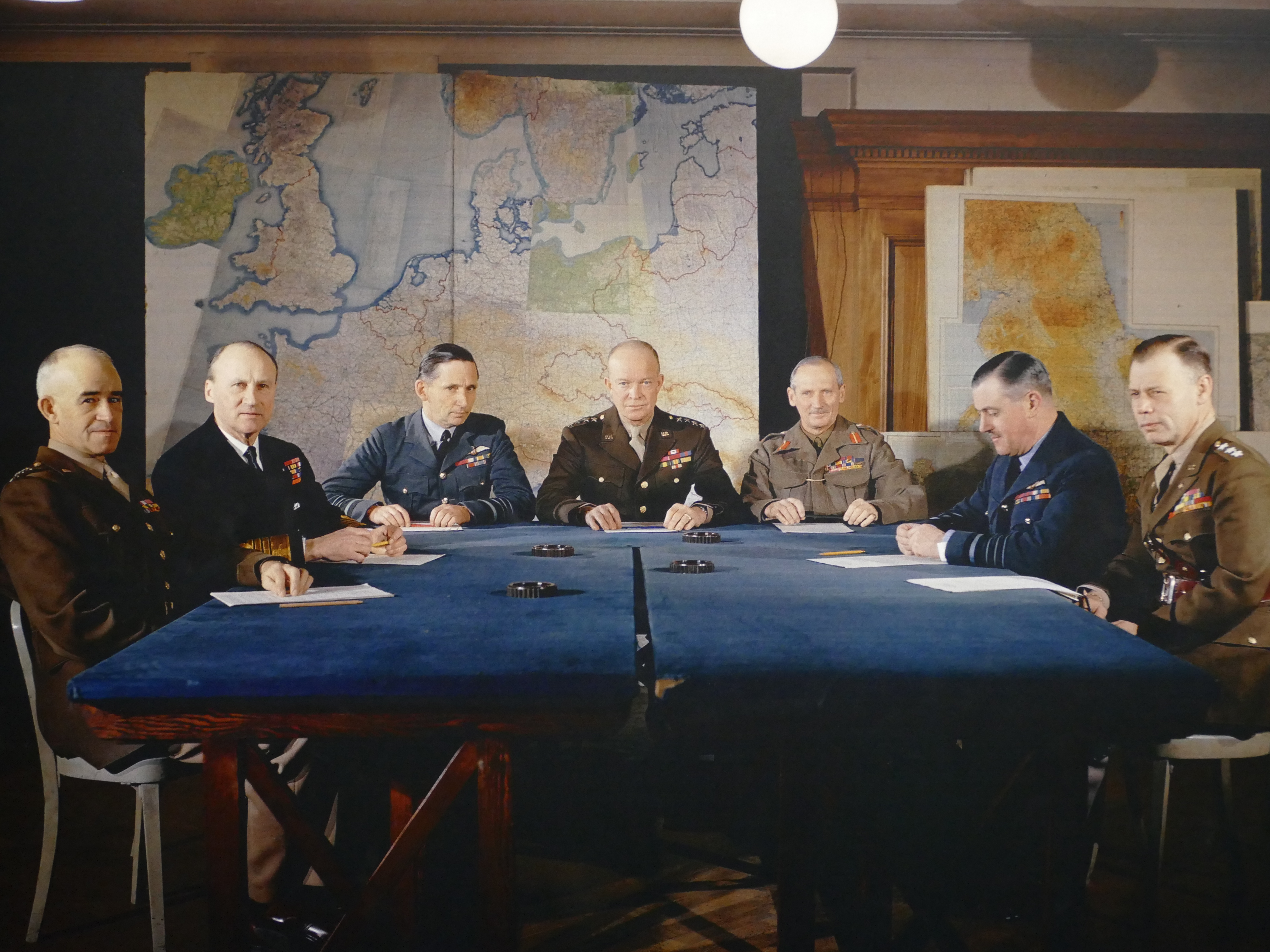 It has a copy of the famous photo (© IWM) showing the key players planning Operation Overlord: