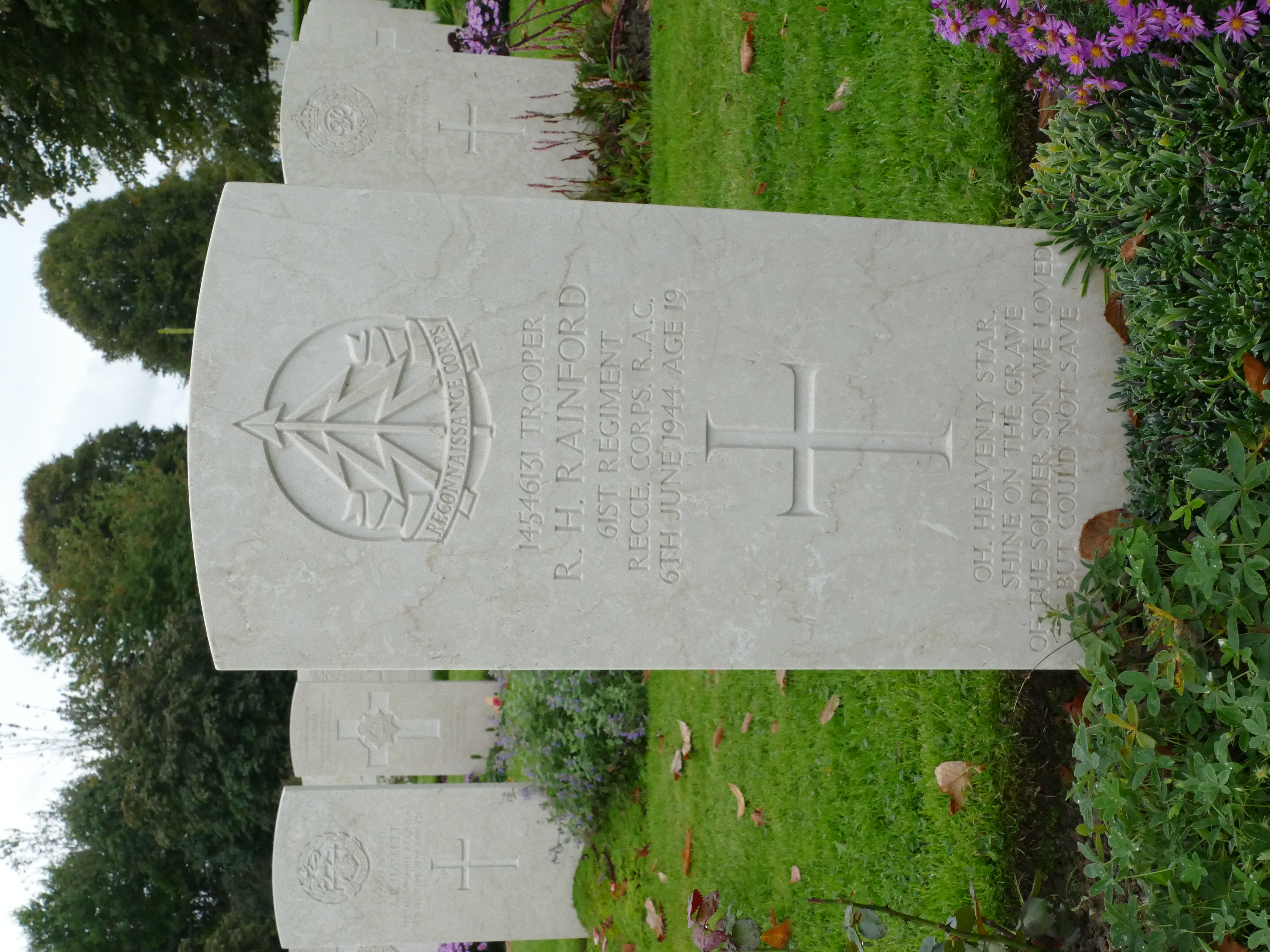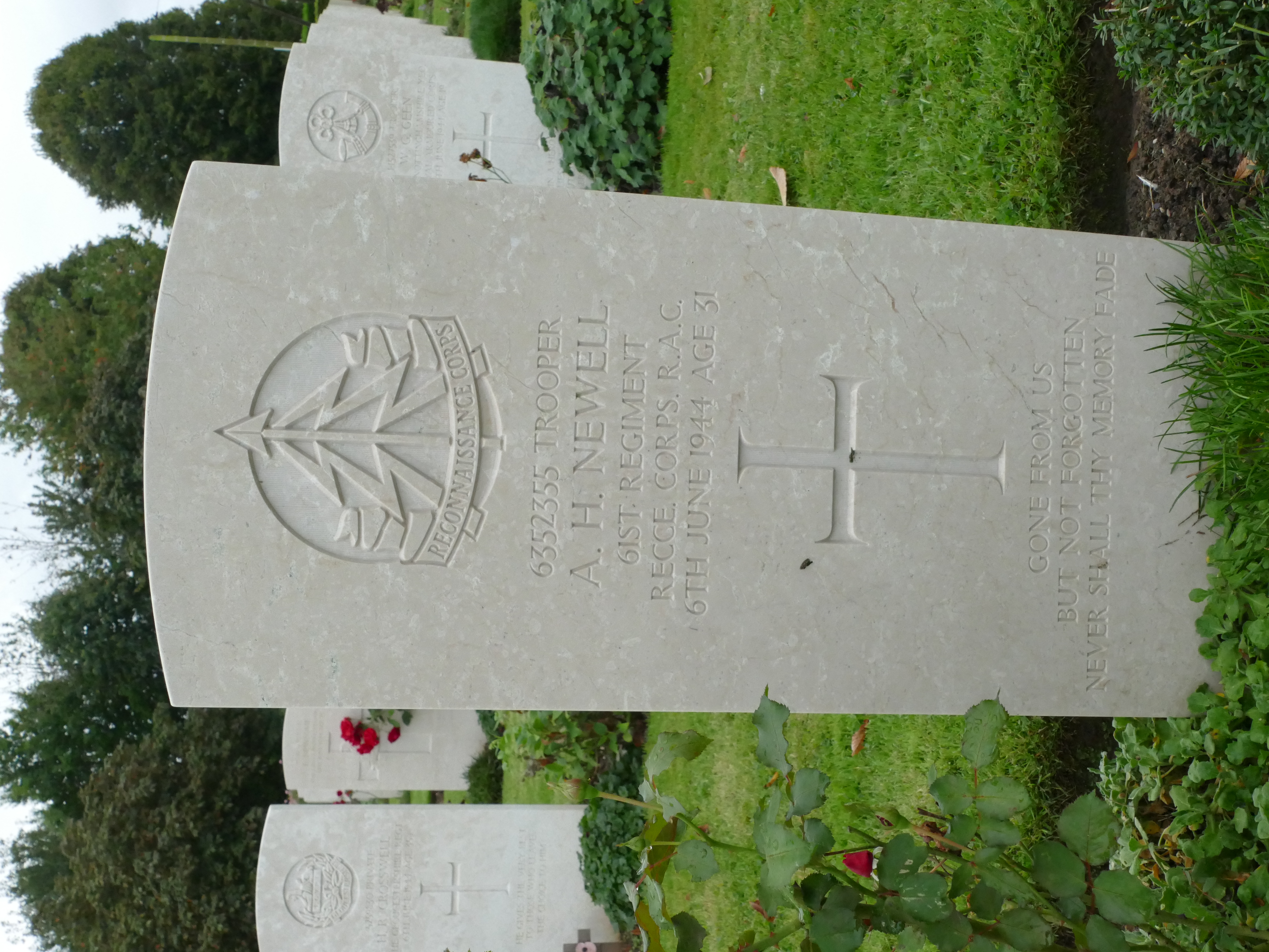 Many bodies were lost but the graves of Sergeant William Moss and Troopers Arthur Newell and Richard Rainford can be found in Bayeux War Cemetery. One of these may have been the driver of Eric Brewer's carrier was lost and reached the Caumont area on D Day. He was killed by a German machine gun firing from a hedge.