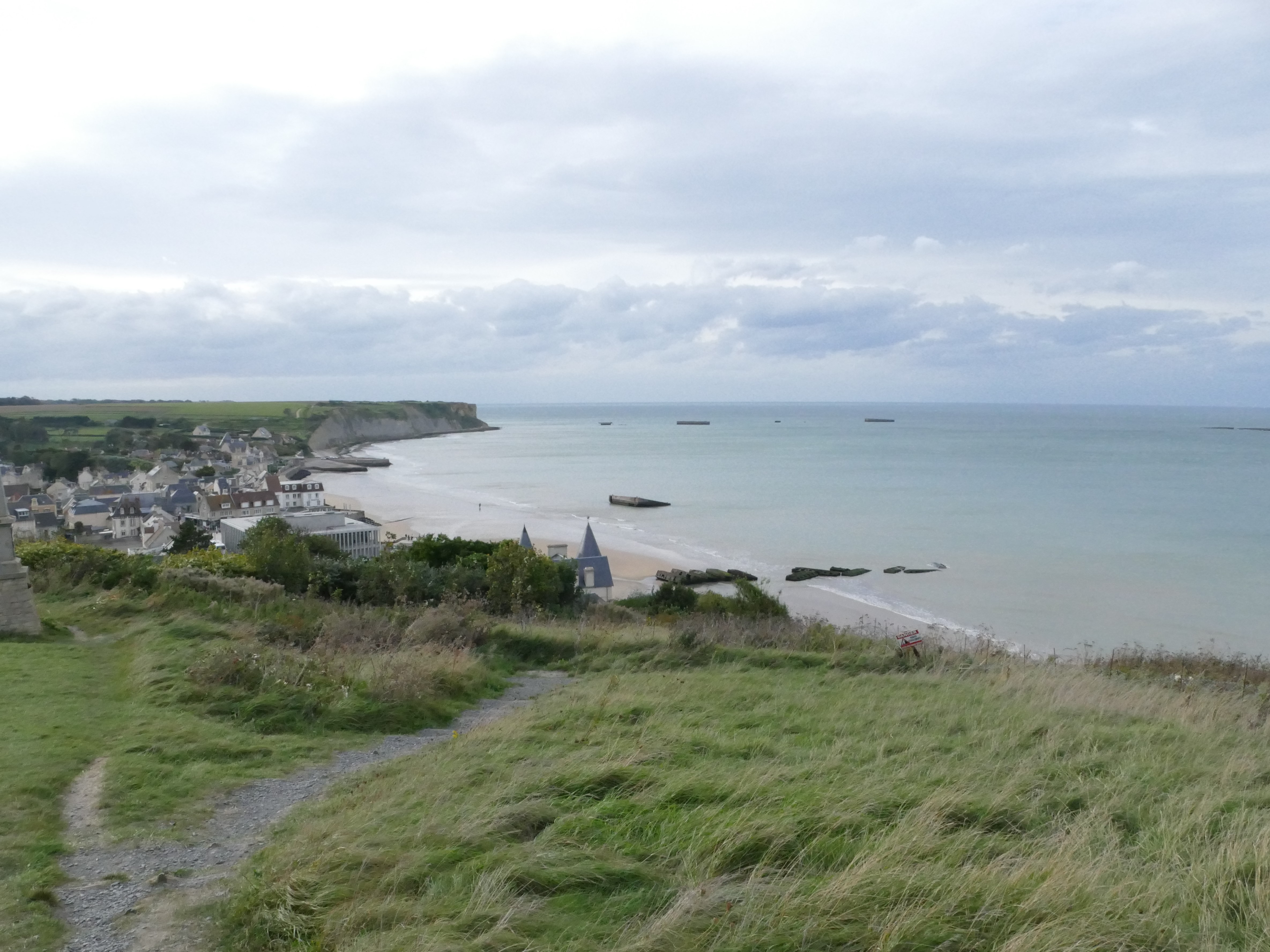 On the clifftop to the east of Arromanches-les-Bains there is a memorial to the Royal Engineers who played a critical role on D Day clearing beach obstacles and mines to create safe routes across the beaches, as well as constructing the Harbour.