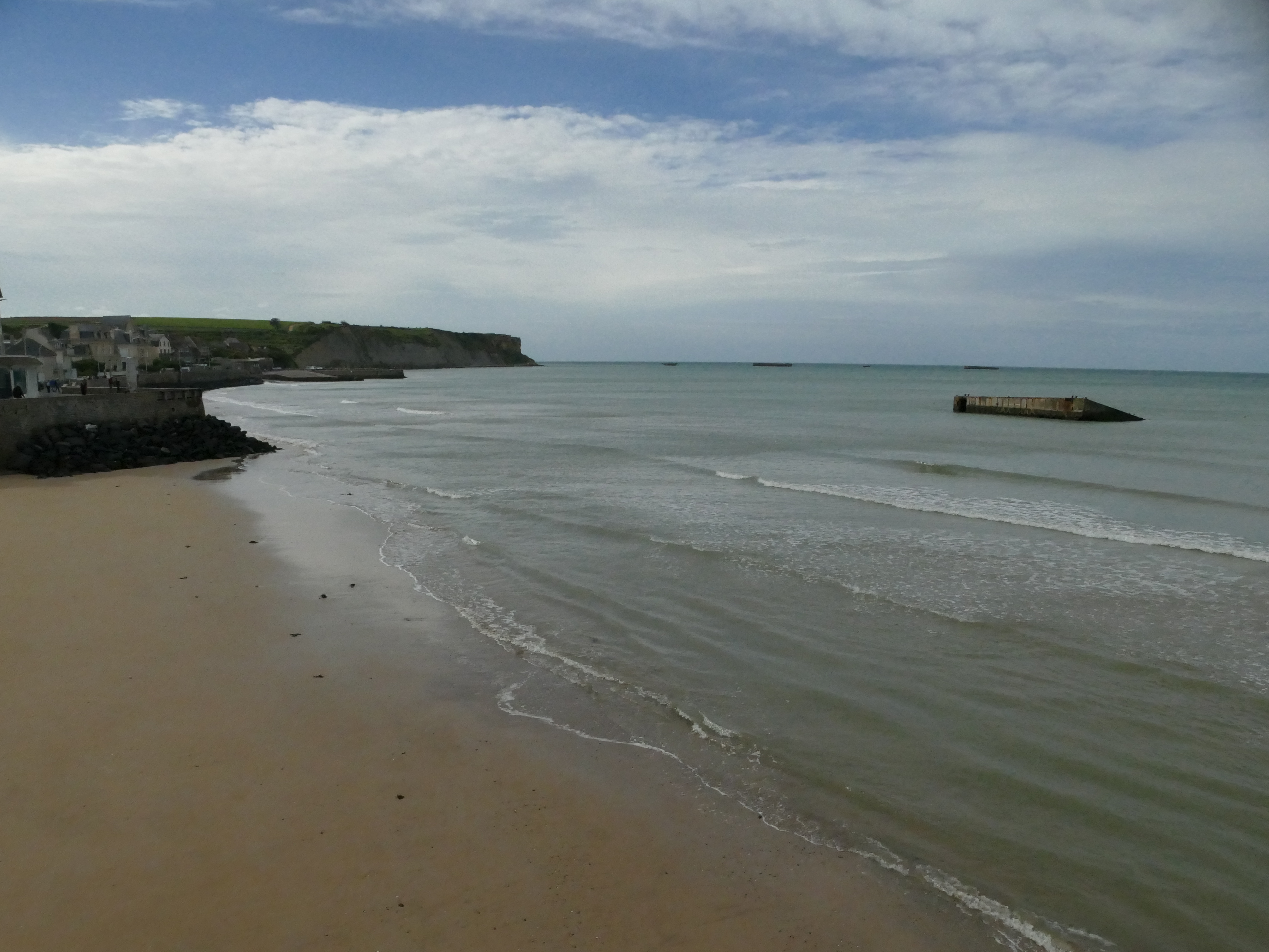 Arromanches-les-Bains lies to the north of Bayeux on the coast. At low tide the hulks of the Mulberry Harbour rise in a wide arc around the town beach and are still an awesome sight.