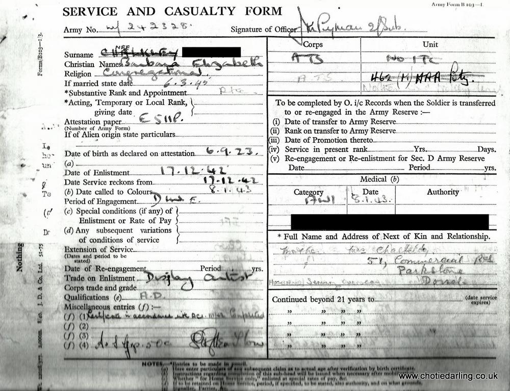 (Eric Brewer's Service Record - copyright Derek Brewer and family)
